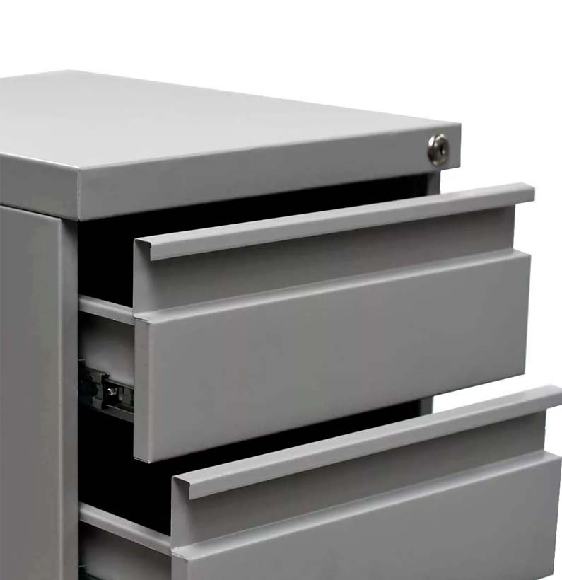 La Cajonera Metálica cuenta con 3 cajones con posibilidad de bloqueo gracias a su chapa de seguridad. Su versatilidad permite que sea usada en múltiples configuraciones como bajo escritorio, como archivador, entre otras. Elaborado en lámina Cold Rolled y acabado en pintura electrostática, proporciona una resistencia superior. Nuestros archivadores para oficina, son usados de forma individual o como complemento en escritorios.