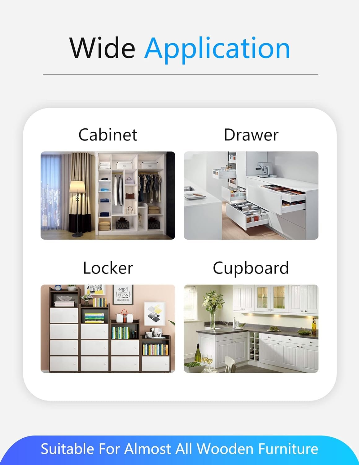 - Amplia aplicación: nuestra cerradura biométrica inteligente se puede utilizar ampliamente en muebles de madera, como armarios, cajones, gabinetes, cajas de almacenamiento, etc. ¡Fácil instalación! Siempre que el grosor de sus muebles sea el adecuado, se puede aplicar perfectamente. Disfruta de la diversión de hacerlo tú mismo.