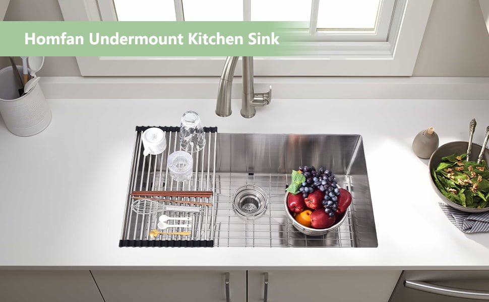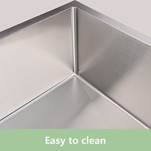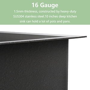 Todos los fregaderos Homfan están fabricados con acero inoxidable de grado T-304 de calibre 16 que nunca se oxida, resiste tus necesidades diarias y nuestra durabilidad de grado industrial con mayor resistencia a abolladuras y daños.