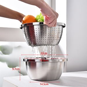 Cuenco de drenaje de acero inoxidable 304 para secar platos, frutas o verduras. Saludable e higiénico, fácil de limpiar, y la versión engrosada tiene una nueva función de amasado, que es más conveniente para uso doméstico.