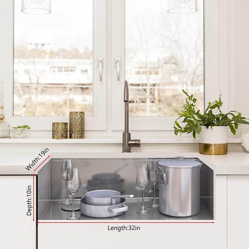 Fregadero de cocina de 32 pulgadas para cuenco individual, fregadero de cocina de acero inoxidable de calibre 16 con accesorios, fácil drenaje y bajo ruido, 32 x 19 x 10 pulgadas (níquel)