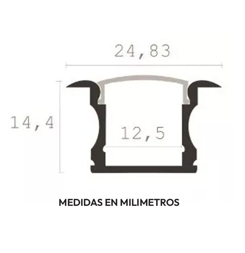 Fabricado en aluminio de alta pureza anodizado en plata. Ideal para aplicaciones como empotrar en drywall, madera. Con una aleta que cubre las inperfeciones de los cortes. Es un perfil al que no se marcan los puntos de LED.